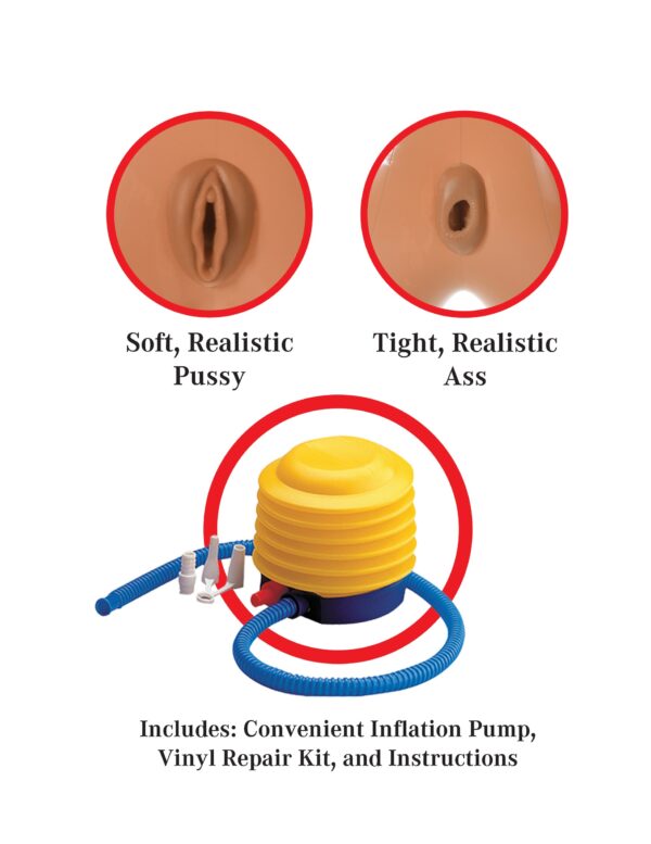 Bambola realizzata in materiale morbido, con viso stampato, seno sodo e due pertugi (vagina ed ano) in cui non indugiare!