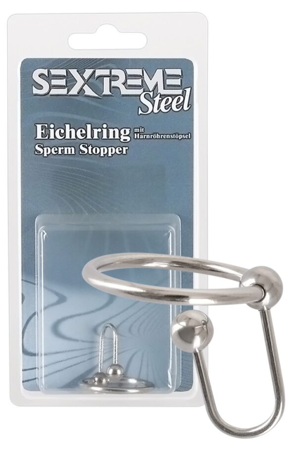 Sperm stopper della Sextreme è un anello del glande con tappo uretra in movimento. Permetterà di bloccare e ritardare la vostra eiaculazione. Realizzato in acciaio inox e ha un diametro che può raggiungere i 2,8 cm .