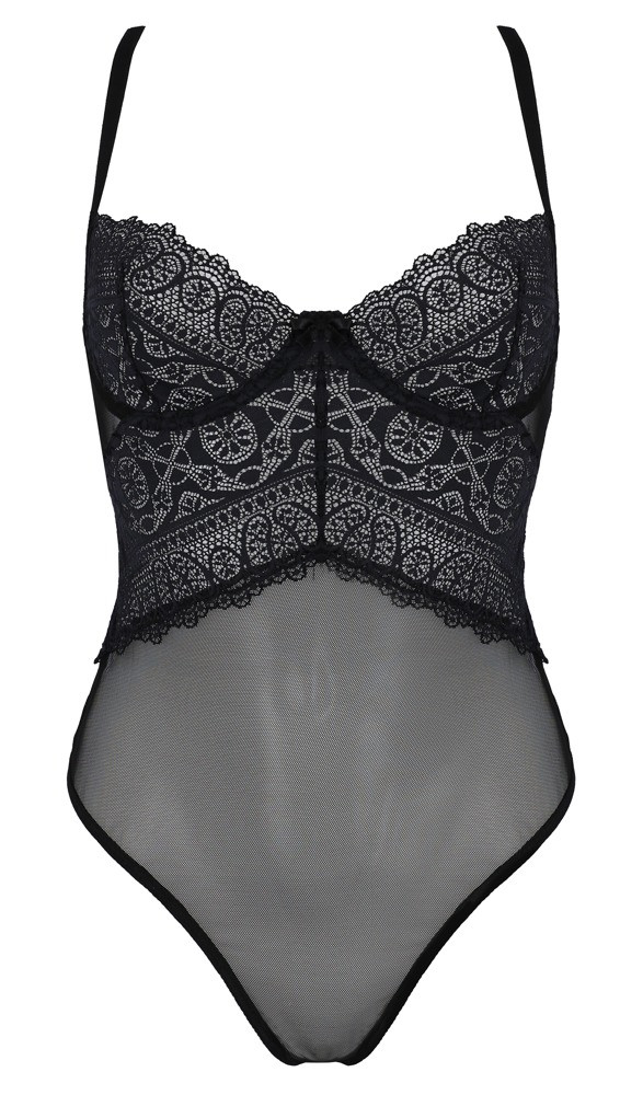Body Kerria morbido e coccoloso della Collezione Eco di Passion in powernet elastico con pizzo fantasioso sul davanti. Seducente stile Rio con coppe con ferretto, tagli alti sulle gambe e chiusura con gancio sul cavallo. Le cinghie sono regolabili per una vestibilità perfetta.