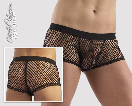 Boxer a rete trasparente con bordo elasticizzato nero. Per una serata ad alta tensione…