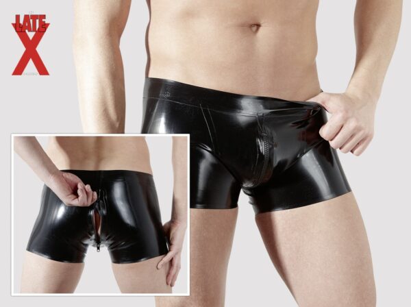 BOXER IN LATEX NERO CON CHIUSURA ZIP