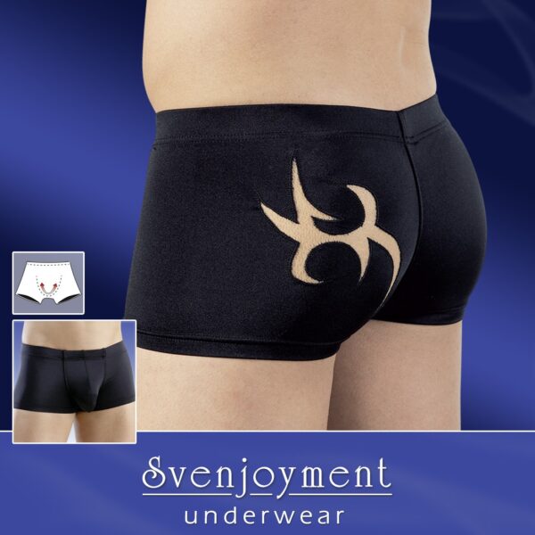 Bellissimo boxer in tessuto nero con figura tribale ritagliata sulla parte posteriore….