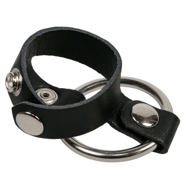 COCKRING IN PELLE CON ANELLO TESTICOLI IN METALLO