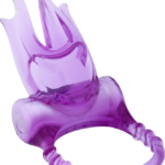Anello per pene e testicoli in similpelle nera con separatore testicolare e ampia fascia che impone un certo distacco dai testicoli al membro e anello che allontana il pene dalla zona pubica.