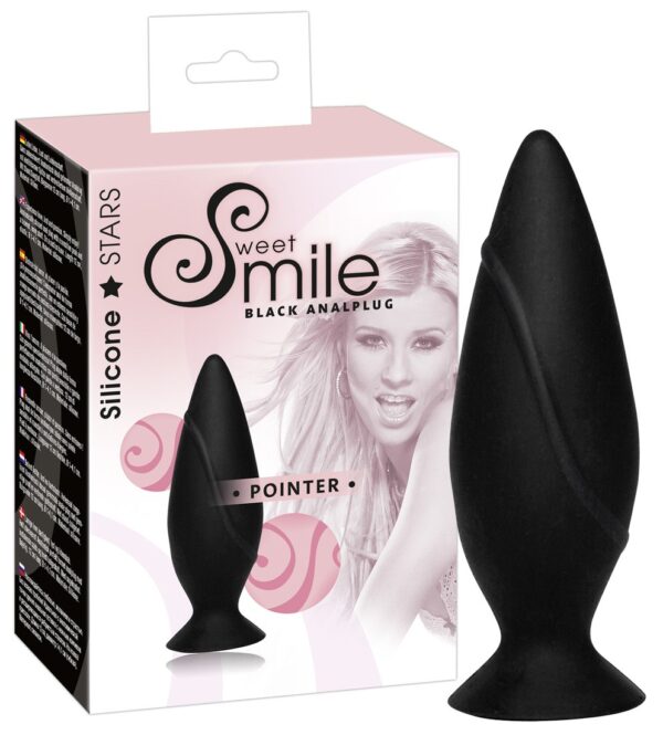 Cuneo anale nero a forma conica, con base a ventosa. • Lunghezza totale 9,7 cm, • Profondità di inserimento circa 8,5 cm. • Materiale cm Ø 3.2: silicone.