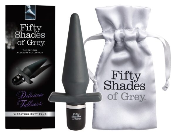 Assaporate l`eccezionale sensazione grazie a questo butt plug della serie 50 sfumature di grigio in silicone liscio e scoprite la sua efficace stimolazione grazie a vibrazioni palpitanti regolabili. Ben 7 diverse modalità con 3 velocità regolabili per raggiungere orgasmi intensi e gratificanti. • Materiale: Silicone e ABS senza ftalati • Lunghezza totale: 13 cm • Lunghezza penetrabile: 9 cm • Diametro: da 1 a 3 cm • Ritmi vibrazione: 7 • Velocità vibrazione: 3 • Batterie: 1 x AAA (mini stilo)