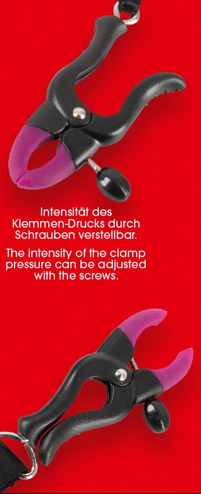 I 2 morsetti labia fissati alle giarrettiere possono essere regolati separatamente. Nero / colore rosa / color argento.