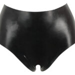 Latex trasparente, Slip con preformato clitoride e piccole labbra, così come ulteriori, dettagliate all’interno della copertina.
