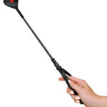 Morbidissimo frustino realizzato in piume su una canna di plastica. • Dimensioni penna: 27 x 13 cm. • Dimensioni canna: 38 cm.