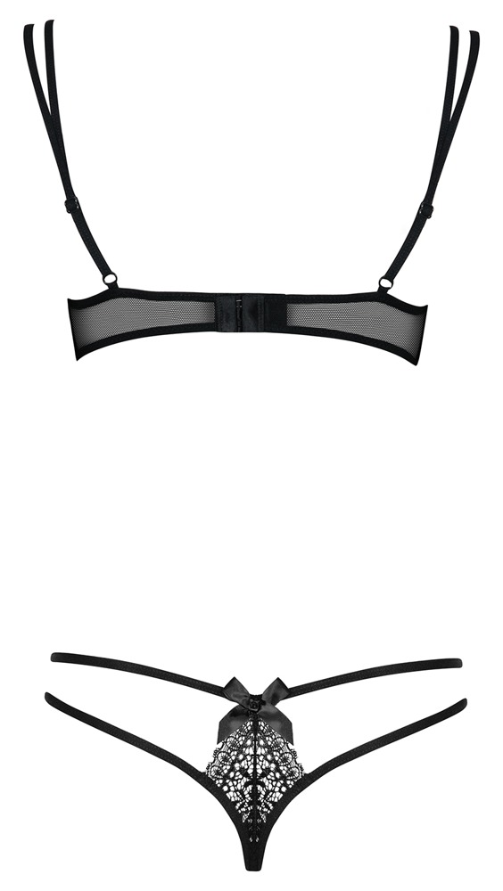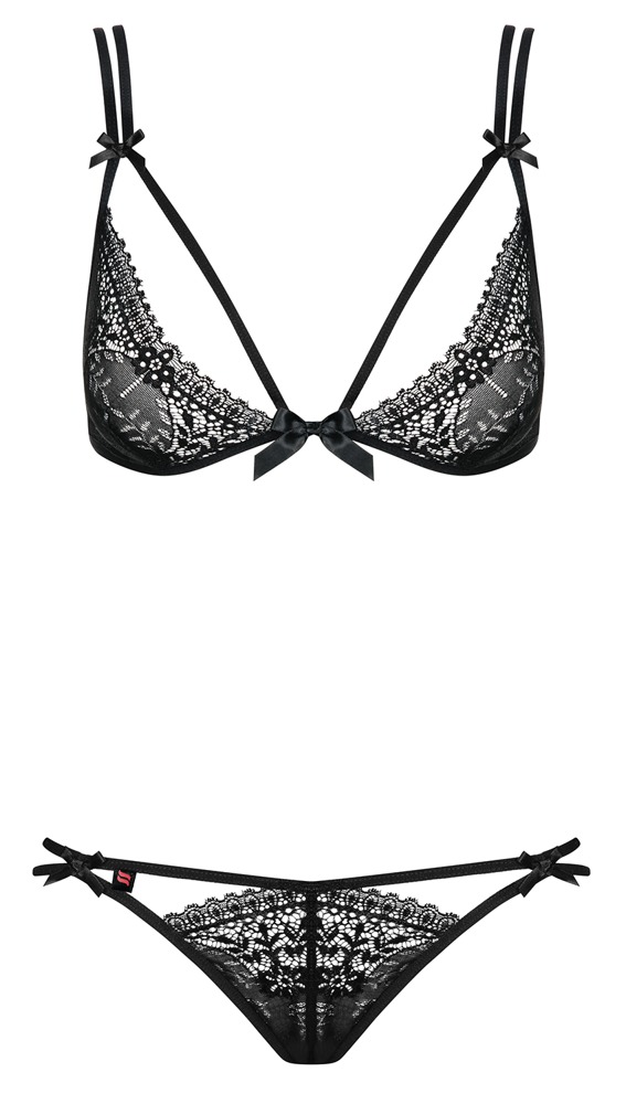 Reggiseno e spago Rio sono realizzati con pizzo fine e decorati con piccoli fiocchi decorativi. Cinghie regolabili.