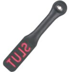 Linea Impressions, per chi vuole lasciare il segno!.. Sculacciatore in cuoio nero finemente modellato e cucito. La parte superiore reca intagliata la scritta BITCH rossa per marcare il tuo partner nel suo fondoschiena.