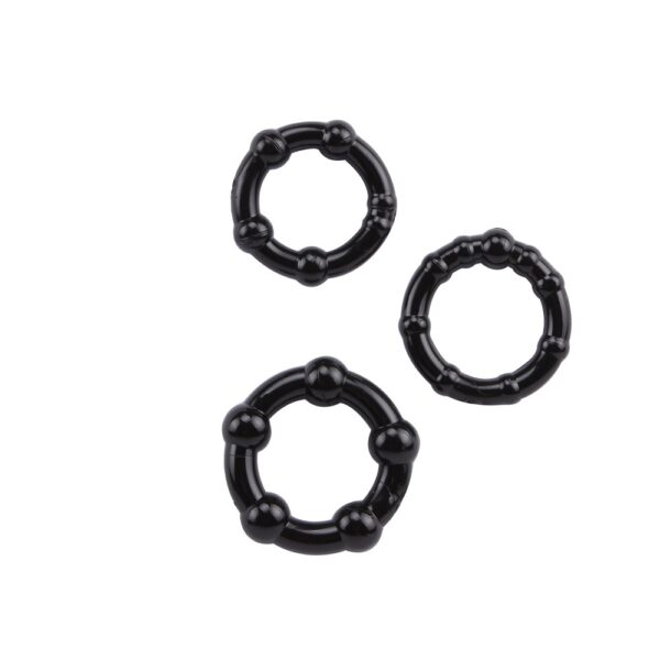 SET 3 ANELLI FALLICI CON RILIEVI STIMOLANTI “BEADED COCKRINGS” NERI