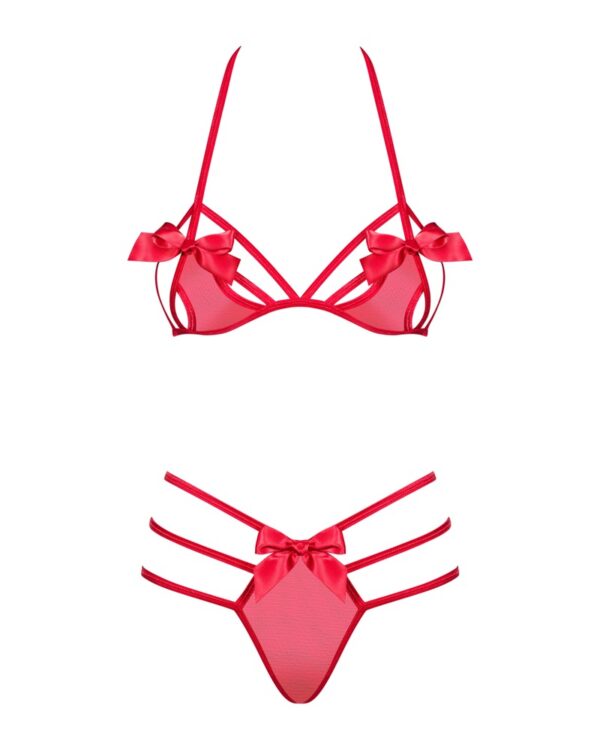 Set Giftella rosso di Obsessive con reggiseno e perizoma morbidi.