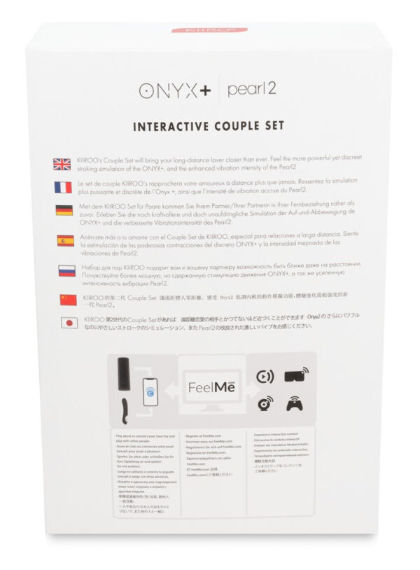 Il set di coppia Onyx + e Pearl 2 ti offre un intero mondo di possibilità erotiche – in modalità analogica ma soprattutto in modalità online. Grazie alla funzione teledildonica, puoi collegare il tuo giocattolo al giocattolo del tuo partner, a contenuti erotici online o ad altri membri o alla community Kiiroo. Può essere fatto facilmente in modalità Bluetooth tramite l’app FeelConnect o tramite Wi-Fi. Il clou speciale: i giocattoli hanno sensori tattili brevettati. I sensori trasferiscono i movimenti del giocattolo del partner al tuo giocattolo. Se una donna si diverte con la Perla 2, i suoi movimenti verranno trasmessi agli anelli di contrazione del masturbatore. Funziona anche nell’altro modo: lei sarà soddisfatta dalle vibrazioni calde quando gioca con l’Onyx +. È possibile anche il rapporto dello stesso sesso. Per molte ore piacevoli in qualsiasi costellazione e non importa quale sia la distanza.