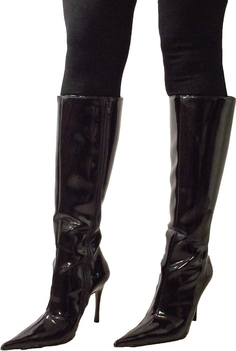 Splendido stivale nero lucido con altezza fin sopra il ginocchio. Il giusto completamento fetish per una serata piena di emozioni.