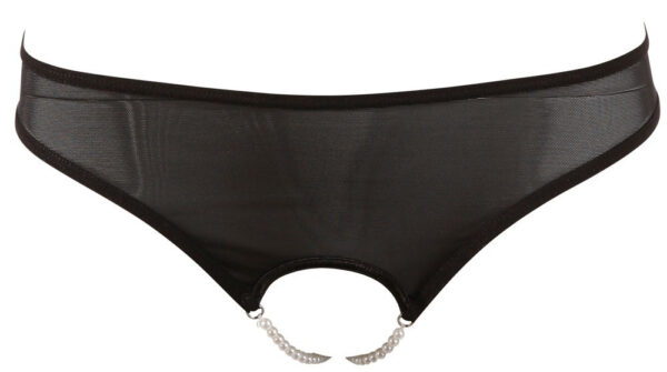 Raffinata mutanda nera con perline che partono dalla vagina per poi andare a formare sul retro un perizoma perlato.