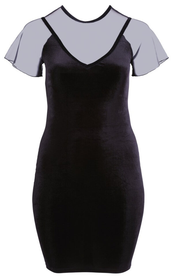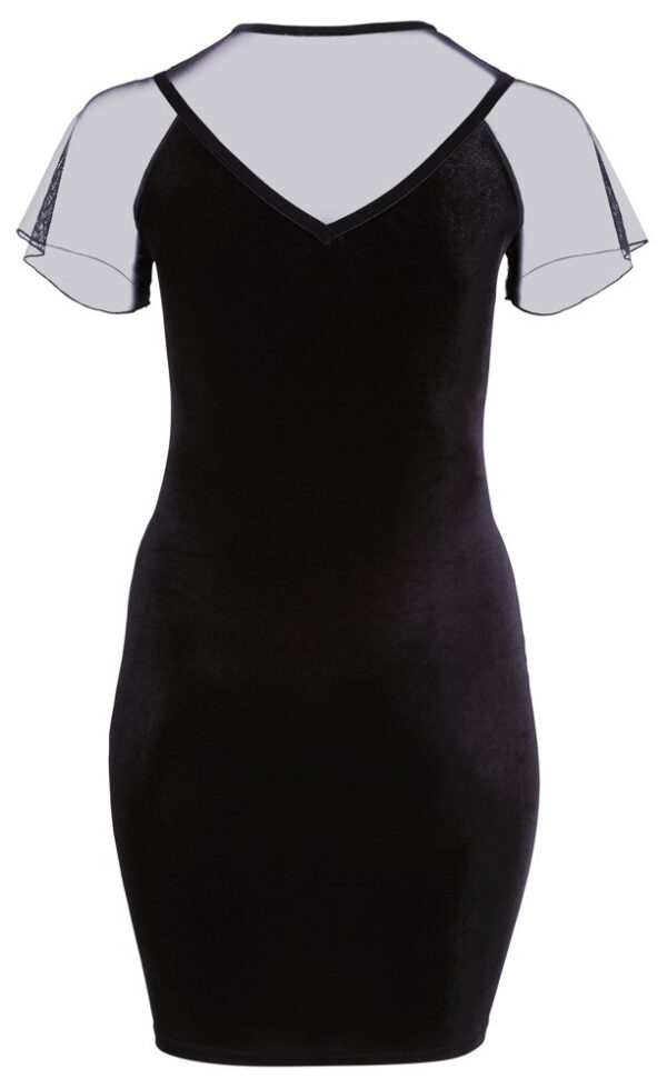 Mini abito in vita con maniche corte. Elaborata combinazione di velluto delicato e power net nella zona del décolleté, sulle spalle e sulla schiena. Con spandex per una vestibilità ideale e un elevato comfort.