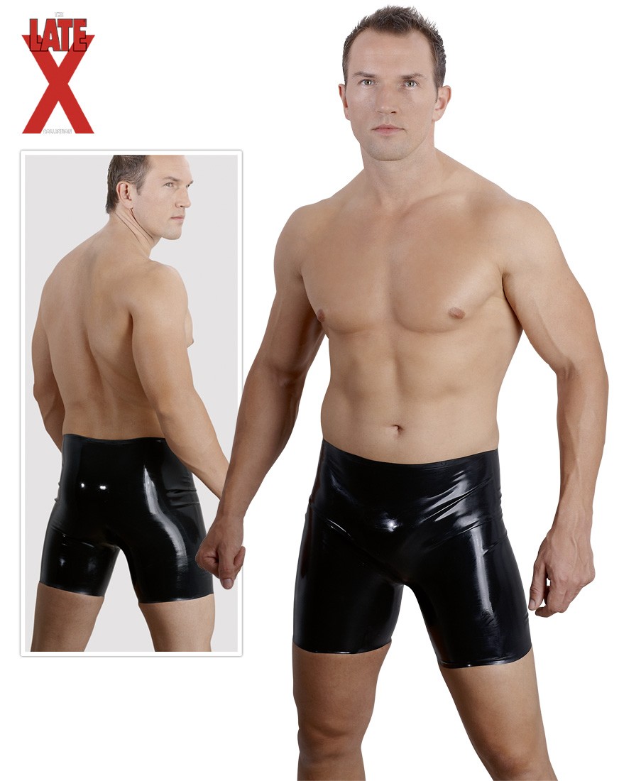 Tuta in latex senza maniche di colore nero. Realizzata con lattice extra spessore di 6 mm e munita di guaina per il pene.